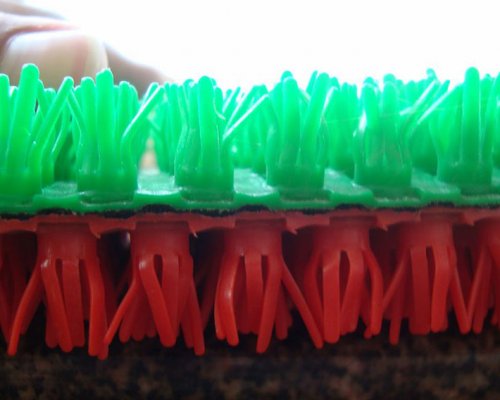 Пластиковые коврики изготовлены из ПВД(полиэтилена низкой плотности), обладают хорошей устойчивостью к сжатию и износу; нижнее дно с дизайном антискользящей текстуры, имеют свойство антискользящее и износостойкое и антикоррозийное, длительным сроком службы. Конструкция кончика травы эффективно удаляет пыль песка и другую грязь с поверхности соскабливания на дно коврика, так что поверхность мата должна оставаться чистой , и очистка ковров только нужно перевернуться и промыть водой.